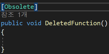 폐기된 요소 윗줄에 [Obsolete]를 작성해 사용할 수 있다.